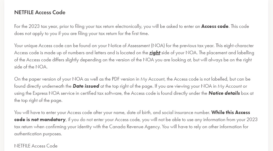 * 처음 신청하는 사람은 CRA 계정이 없고 NETFILE 코드도 없어서 빈칸으로 넘어가면 된다.
