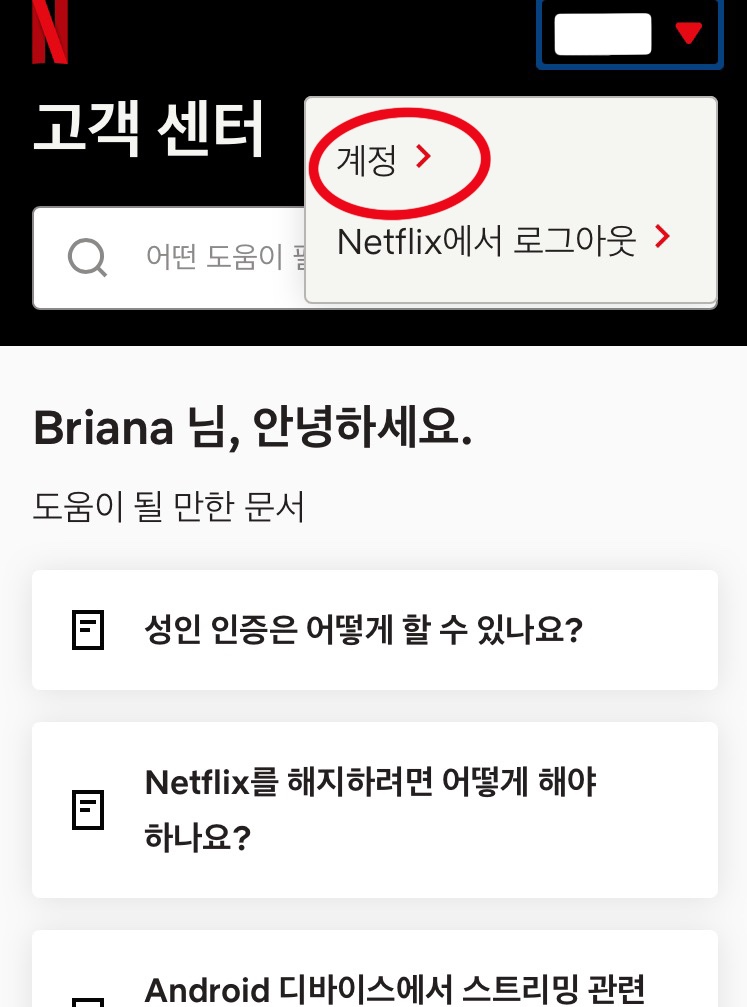1. 넷플릭스 고객센터에 들어가서 공유하는 계정으로 로그인을 한다.