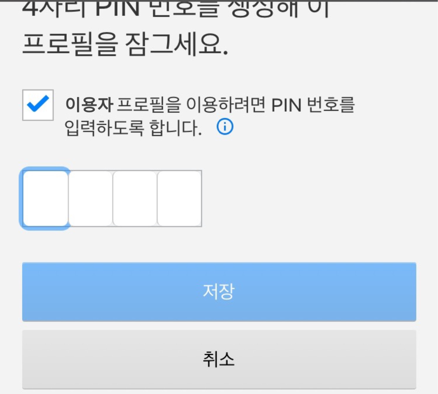 6. PIN번호 이용을 체크한 후 자신의 프로필 잠금에서 사용할 4자리 숫자를 입력한다.