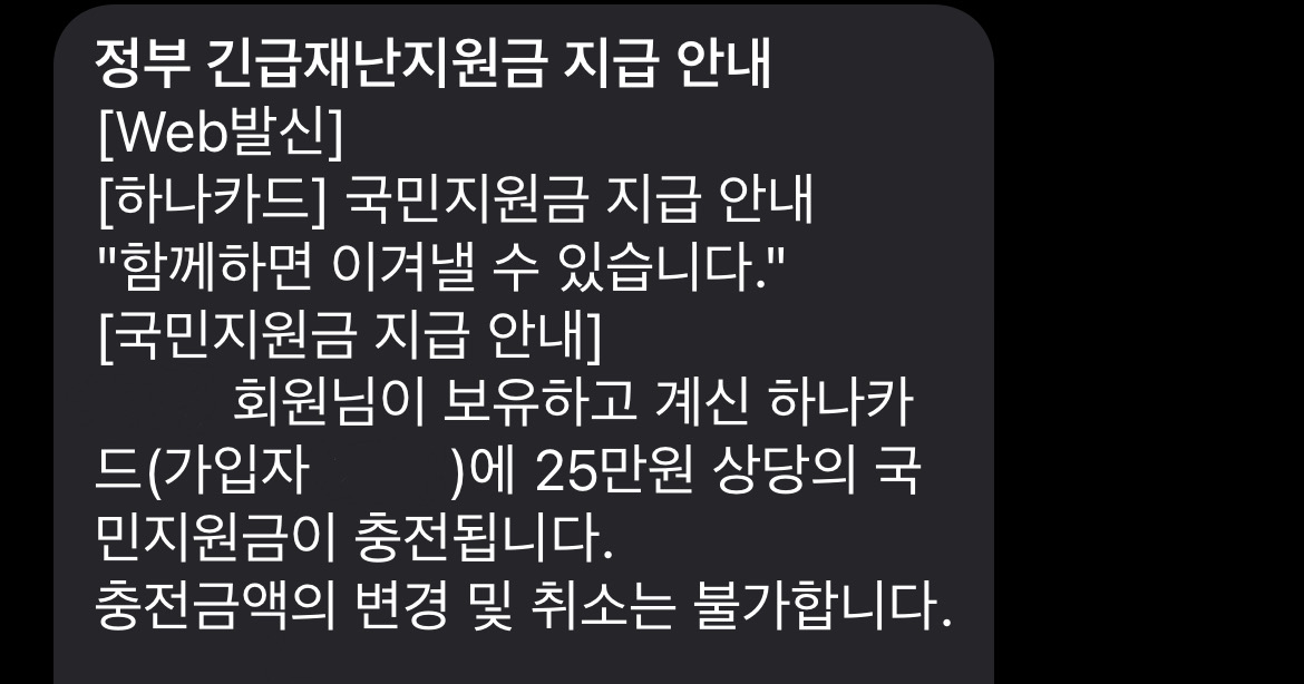 국민지원금 신청 다음 날에 사진과 같은 문자가 오면 거주지변경이 가능하다.
