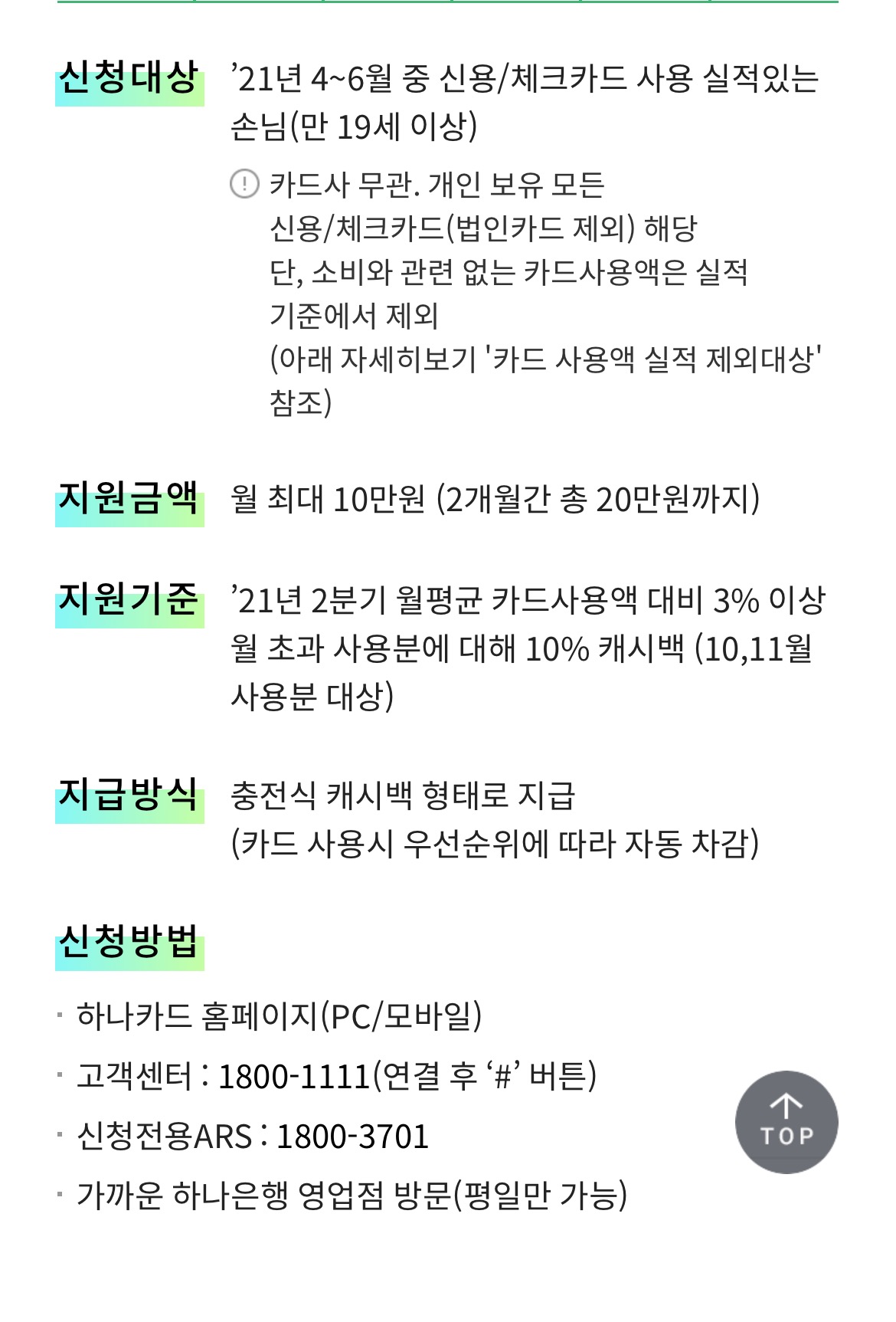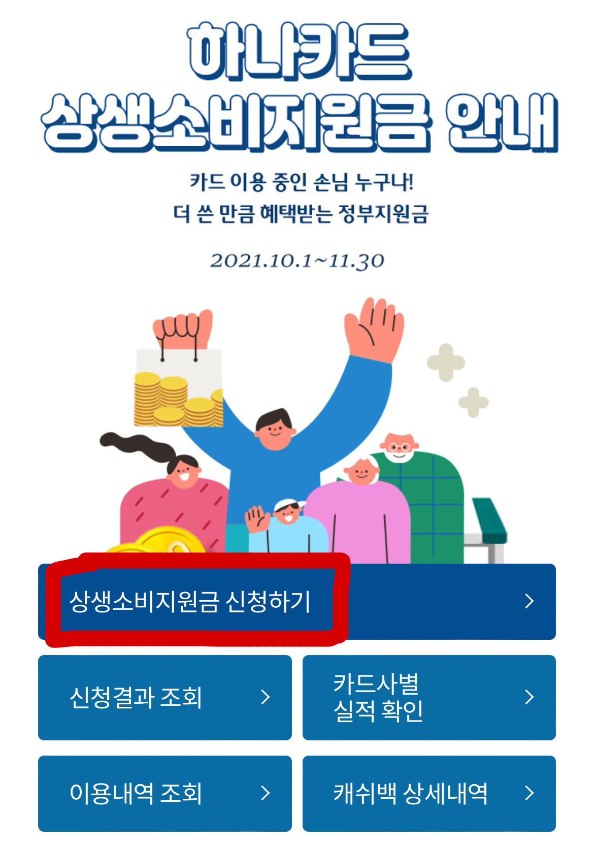 1. 하나카드 홈페이지에 접속한 후 상생소비지원금 신청하기를 누른다.