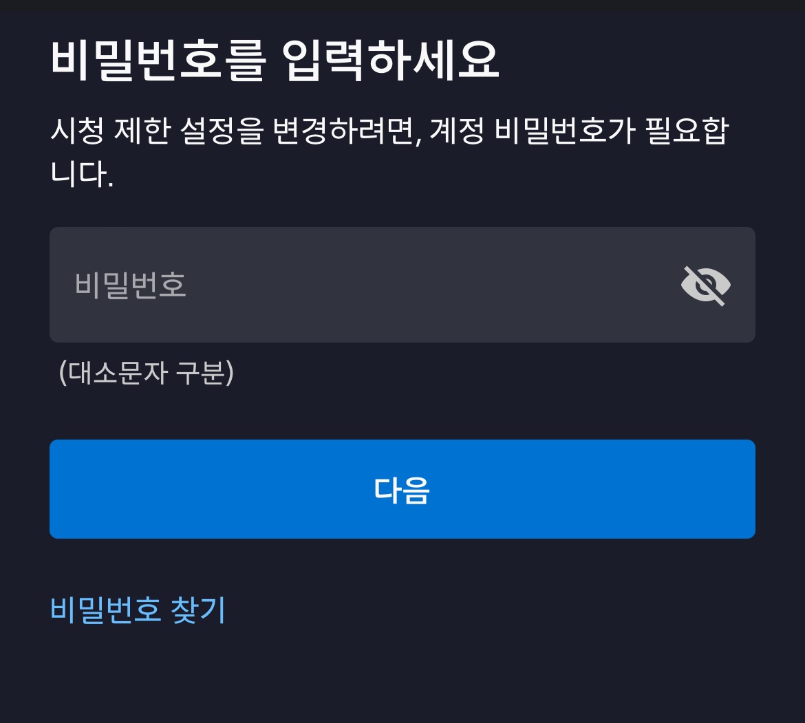계정 잠금을 이용하지 않을 사람이라면 밑에 화면이 나왔을 때 나중에를 누르고 위에 1~6번 방법을 통해 컨텐츠 등급을 설정하면 된다.