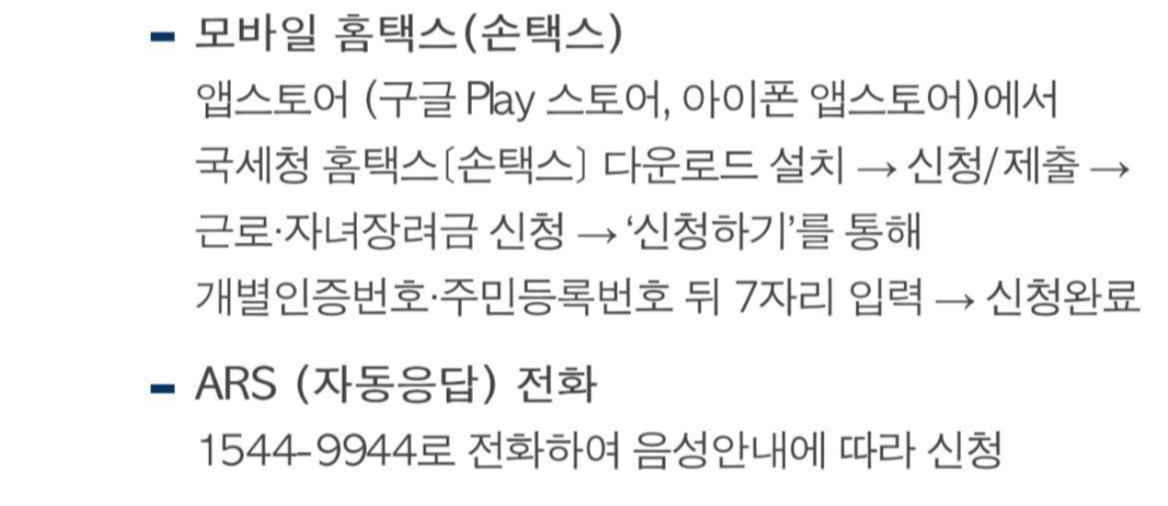 - 홈택스 어플 설치 후 근로장려금 메뉴에서 신청하기