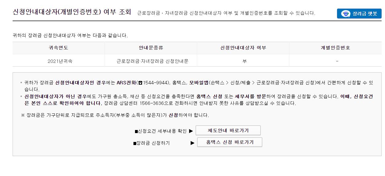 근로장려금 신청대상임에도 안내문을 받지 못할 수도 있기 때문에 신청조건에 어느 정도 부합한다 생각이 들면 확인을 해보는 것이 좋다.