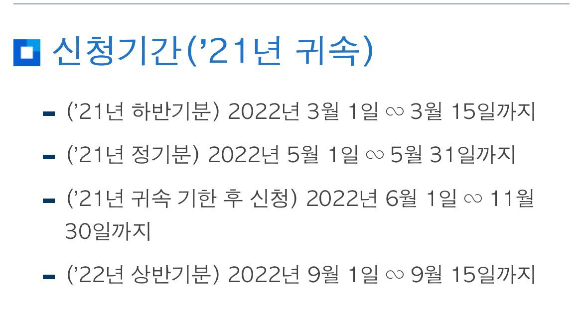 2. 21년 귀속 기한 후 신청: 2022년 6월 1일~ 11월 30일까지