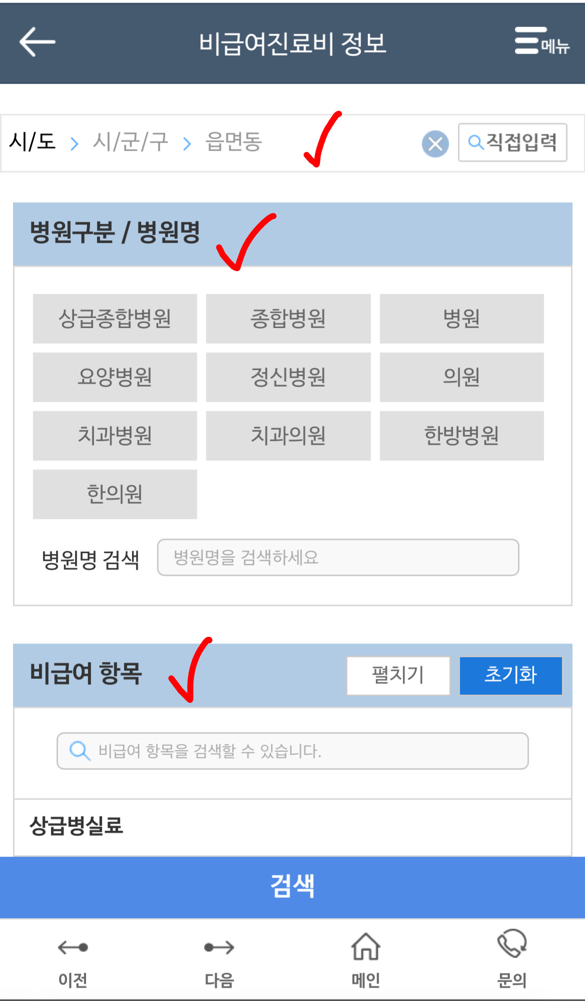 5. 시/도 입력하기, 병원 구분 입력하기, 비급여항목 입력하기