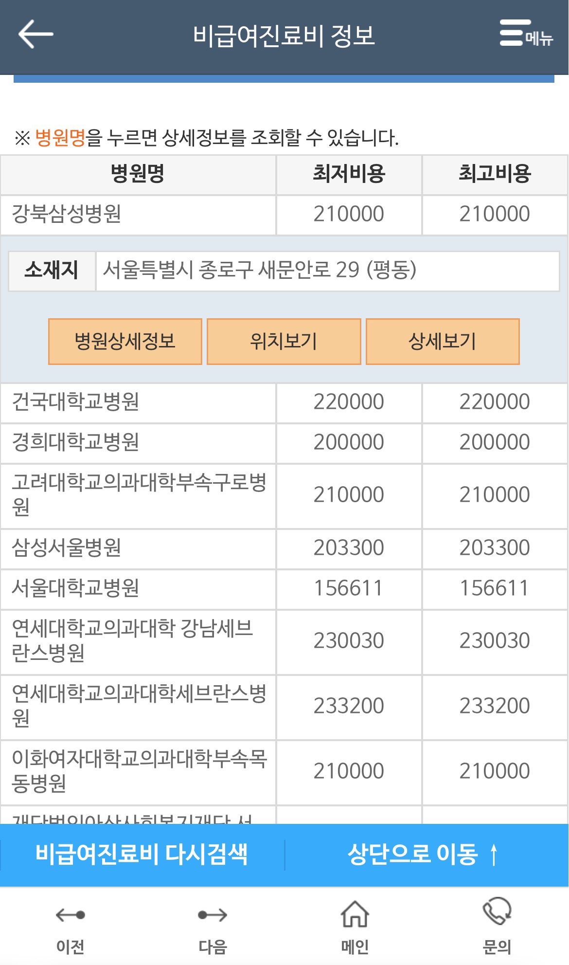 3. 메뉴에 있는 비급여 진료비 정보를 누른다.