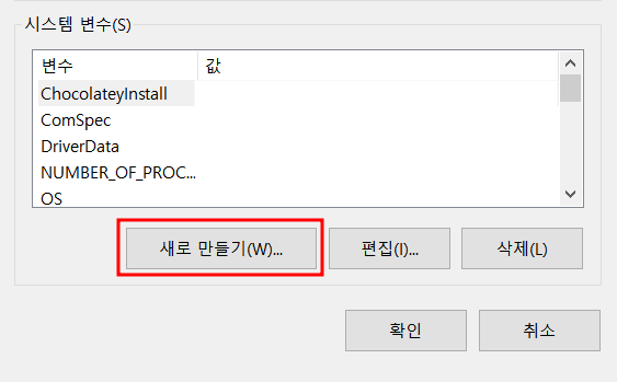 2. 시스템 변수에서 새로 만들기 클릭하기
