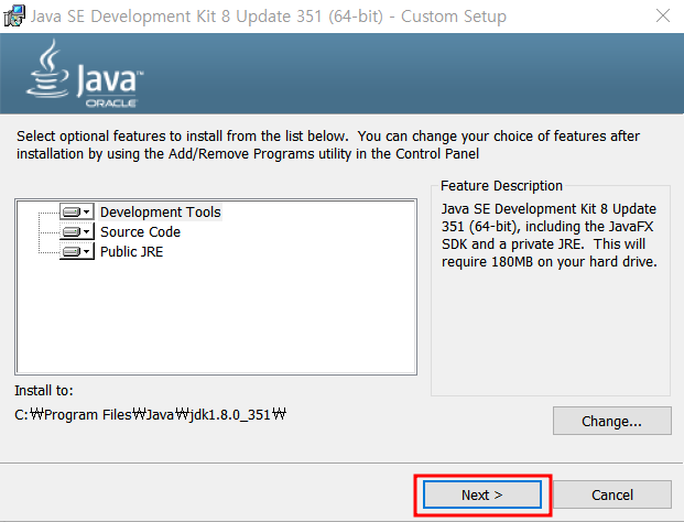 - JRE로 설치되어있으면 JDK로 다시 설치하기