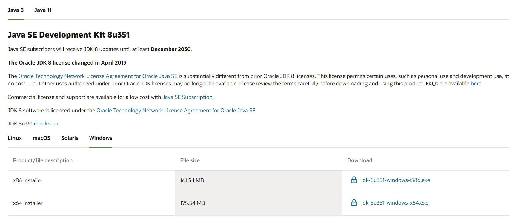 3. Java 8에서 windows 누르고 windows 버전에 맞는 파일 다운로드하기