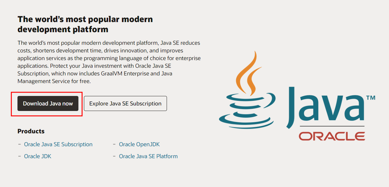 2. 로그인을 한 다음, products -> Java 페이지에 들어가서 중간에 있는 Download Java now 클릭하기