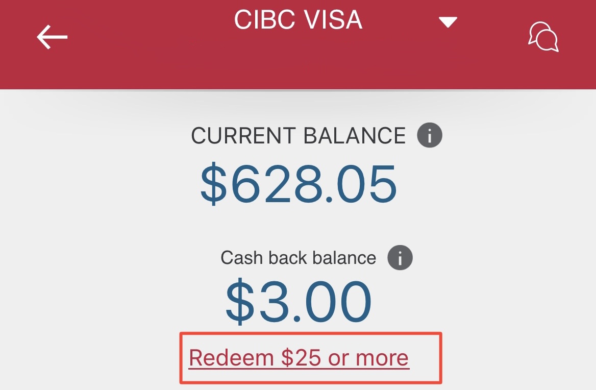 1. CIBC 어플에서 credit card 들어가서 “Redeem $25 or more” 누르기