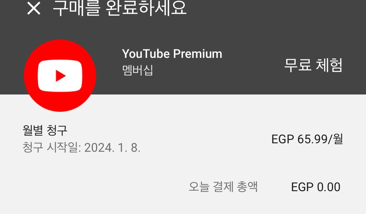 6. 우회한 국가의 유튜브 프리미엄 가격이 화면에 나온다면 우회에 성공한 것
